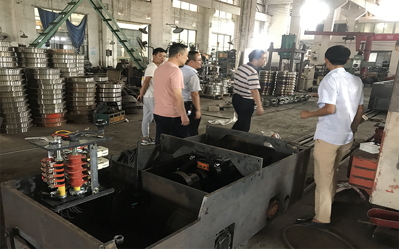 領(lǐng)導陪同客戶參觀了生產(chǎn)車間,了解蓄電池電機車等產(chǎn)品從生產(chǎn)到出廠的整個流程。對于我廠產(chǎn)品在出廠測試的表現(xiàn)非常滿意。