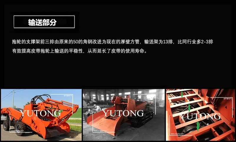 礦用扒渣機(jī)按行走方式分為兩種,一種是礦用履帶式扒渣機(jī),一種是礦用輪式扒渣機(jī)。又稱扒渣機(jī),坑道清理機(jī),坑道出渣機(jī)。按照行走方式分為輪式和履帶式。它是及液壓行走,挖掘裝置,皮帶輸送,裝車,清理巷道底部五種功能。主要由電動(dòng)機(jī),液壓行走,挖掘裝置,行走裝置,皮帶輸送卸料和電器控制系統(tǒng)等部分組成。整車液壓系統(tǒng)由一臺15kw電動(dòng)機(jī)為動(dòng)力帶動(dòng)齒輪泵,液壓油經(jīng)油箱到多路閥到執(zhí)行動(dòng)作元件再回到油箱,通過多路閥的四個(gè)手柄完成對液壓裝置的控制。它突出的優(yōu)點(diǎn)就是操作靈活,出渣效率高,以:2m*2m巷道為例,一排炮在一小時(shí)左右就可以清理干凈。
